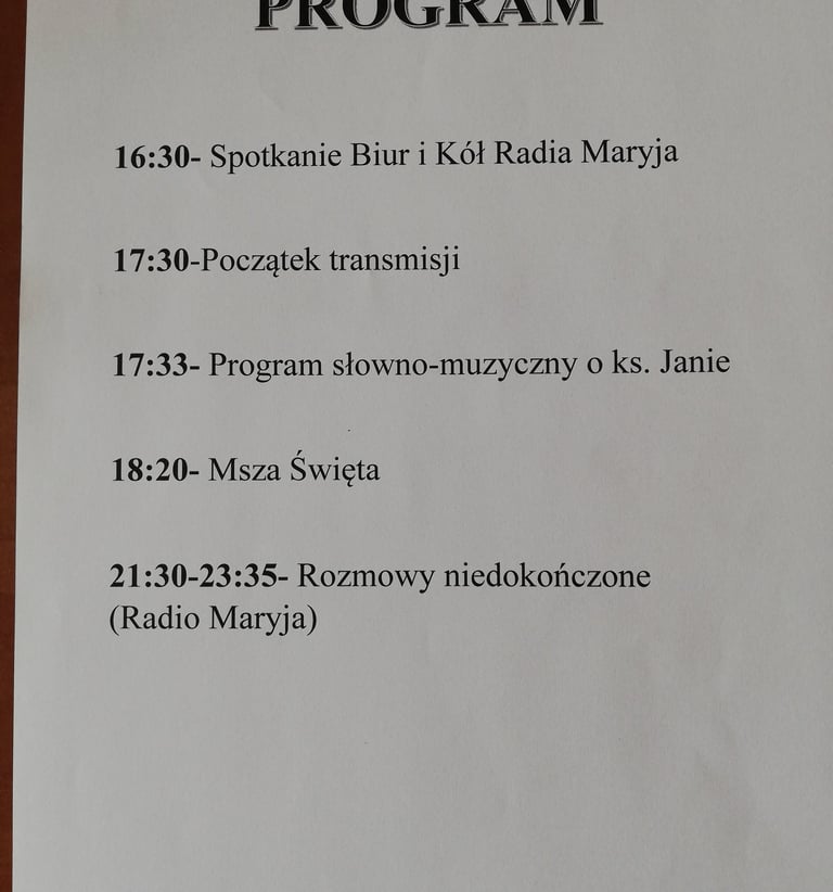 15:00 - Msza św. Pożegnanie relikwii i obrazu św. Jana Pawła II.